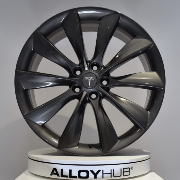 Genuine Tesla Model X Turbine 22″ Inch Alloy Wheels with Satin Black Finish 1027246-00-E 1027247-00-F